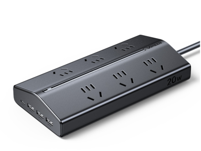 绿联 20W (3A1C)+6AC斜面排插 黑色/1.5米/金属漆 75094
