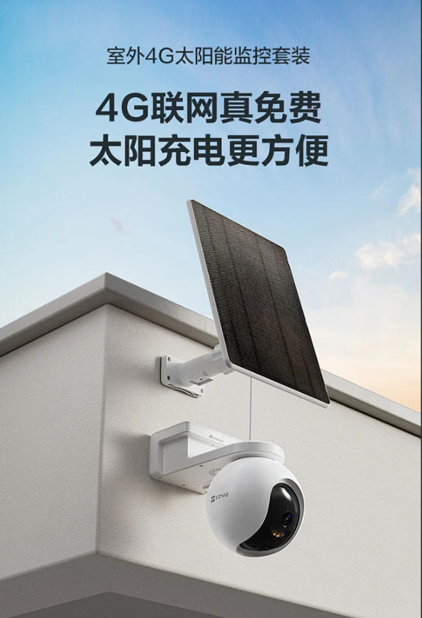 4G终流版 萤石CS-HB8-8MP 800W室外双光太阳能套装
